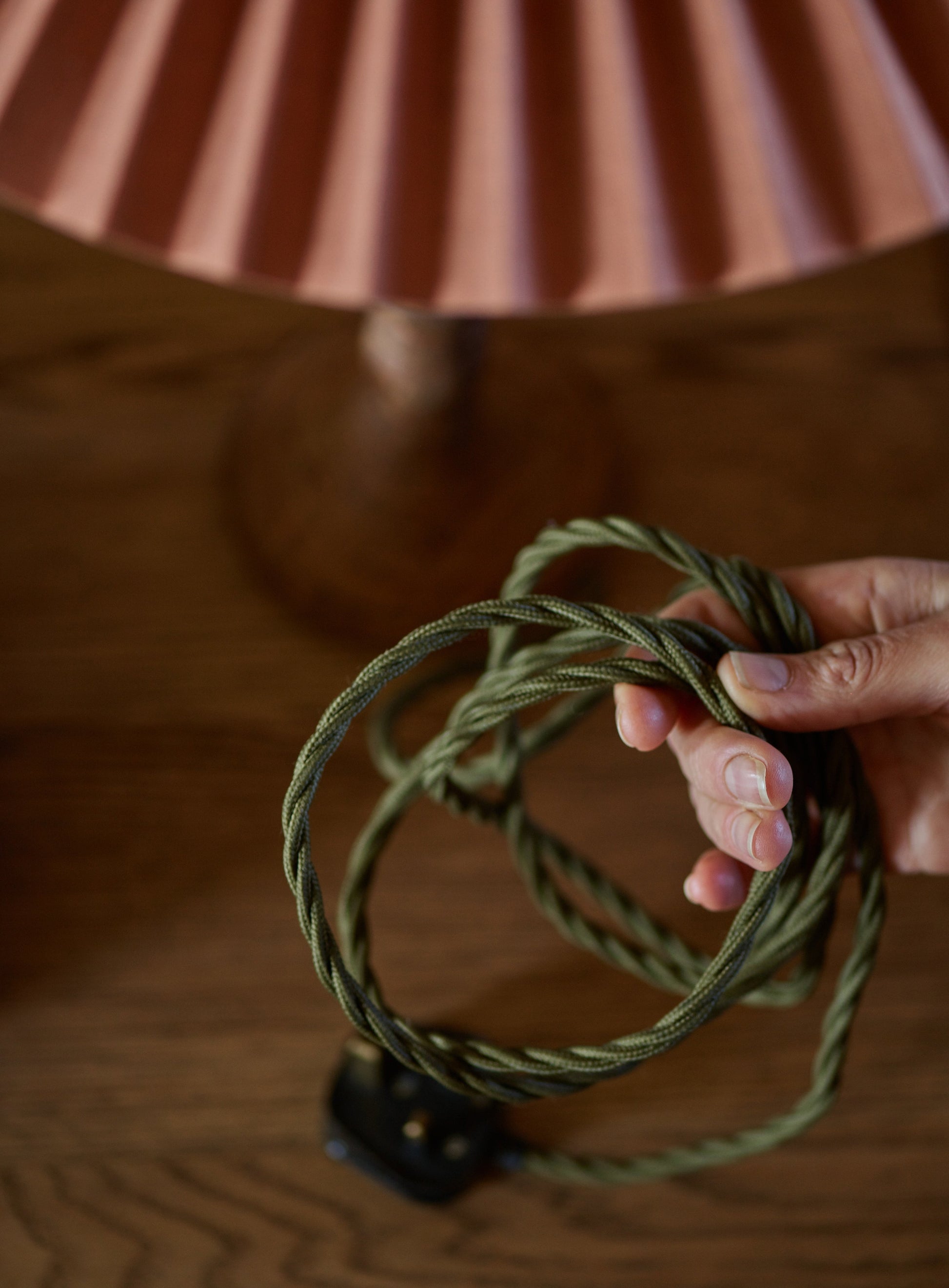 - Featuring a heritage-inspired deep olive twisted cord and brass bulb holder