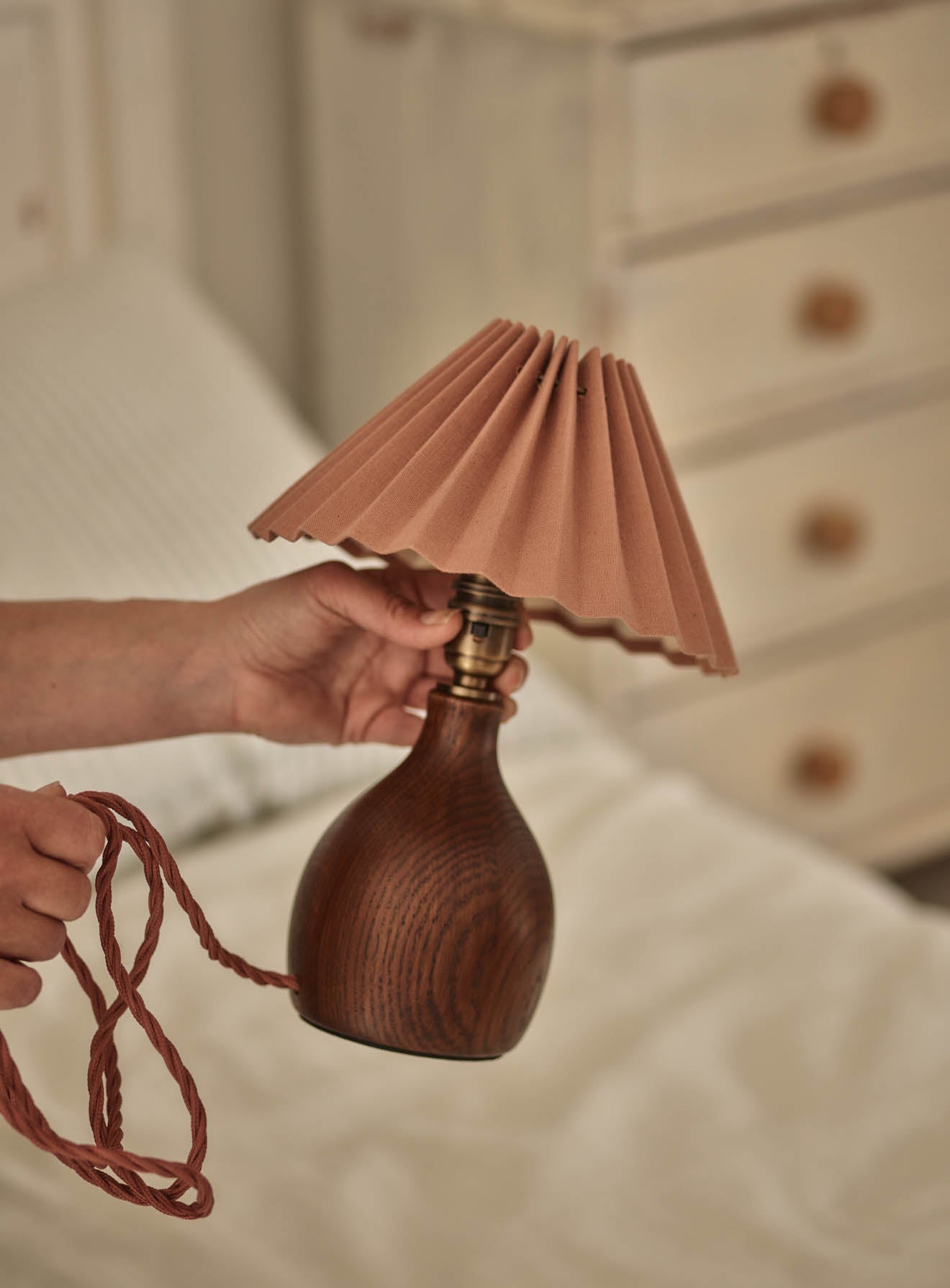 - A classic hand-turned lamp base, sustainably crafted from solid FSC-certified oak
