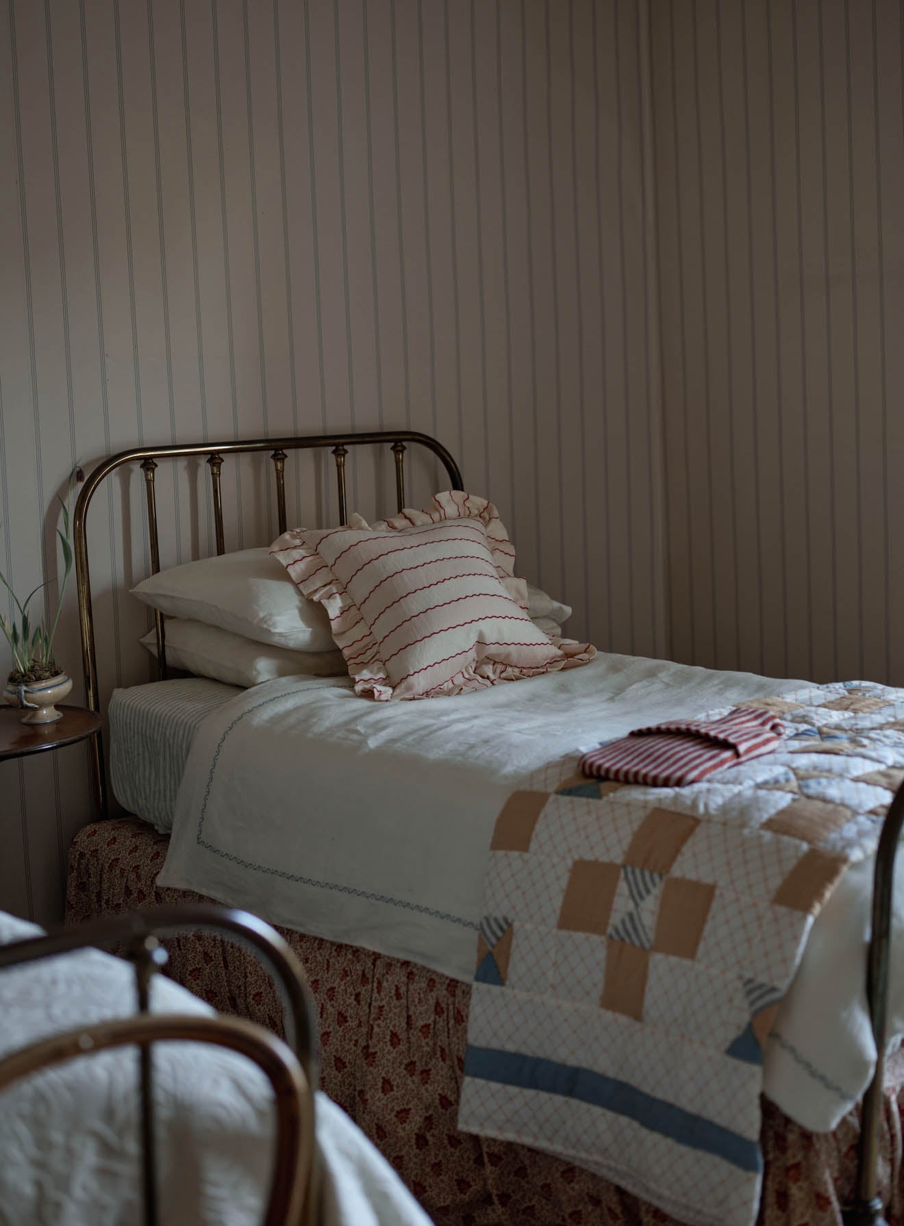 - A beautifully soft hot water bottle cover in warm red and ecru stripes