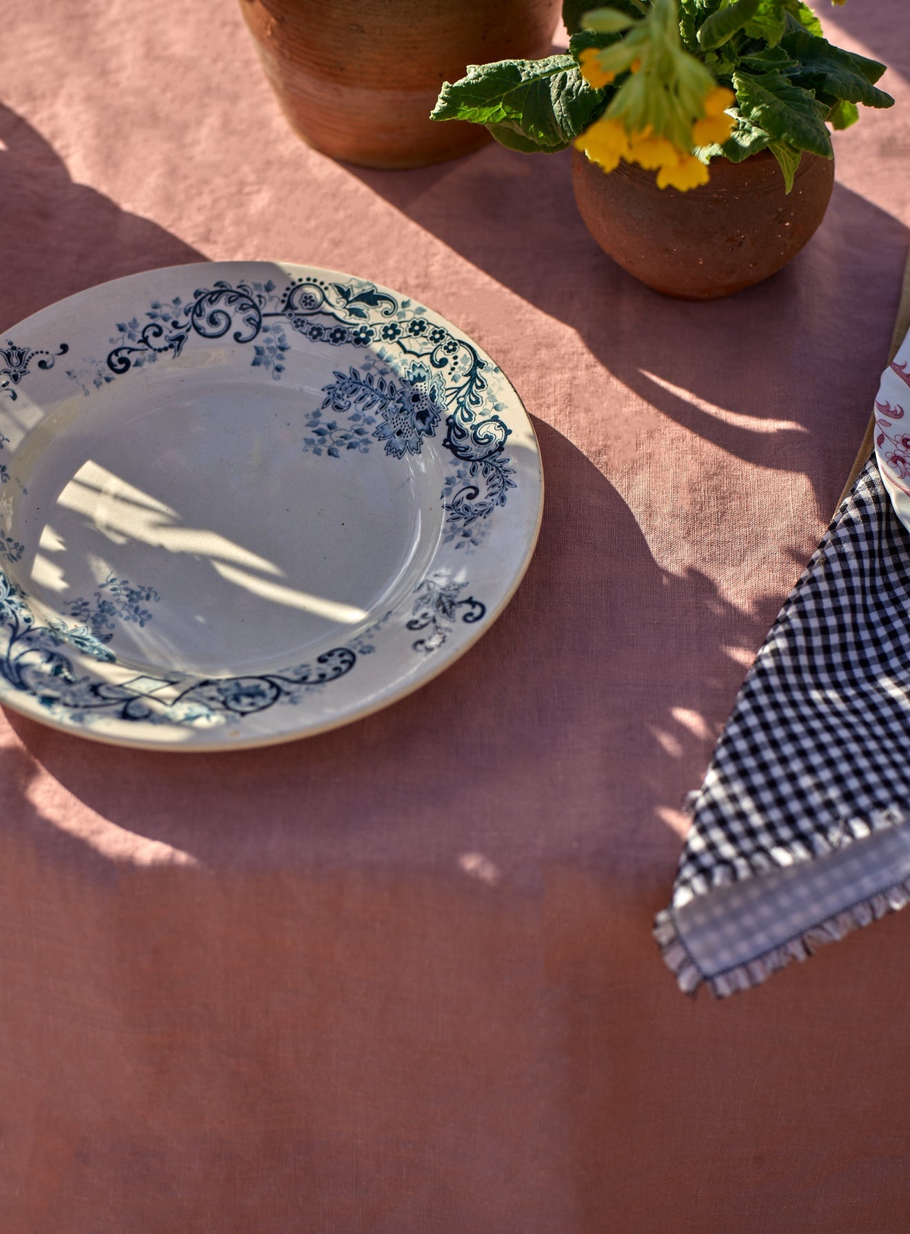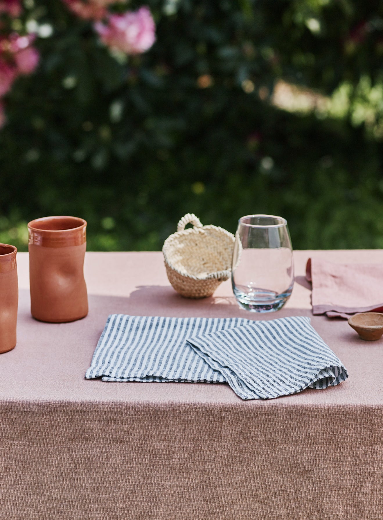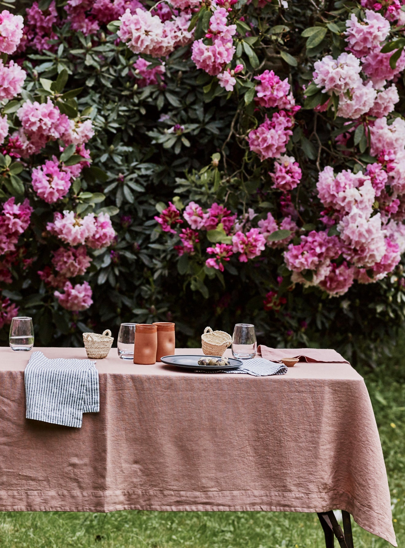 - A beautifully textured linen tablecloth in Plaster Pink