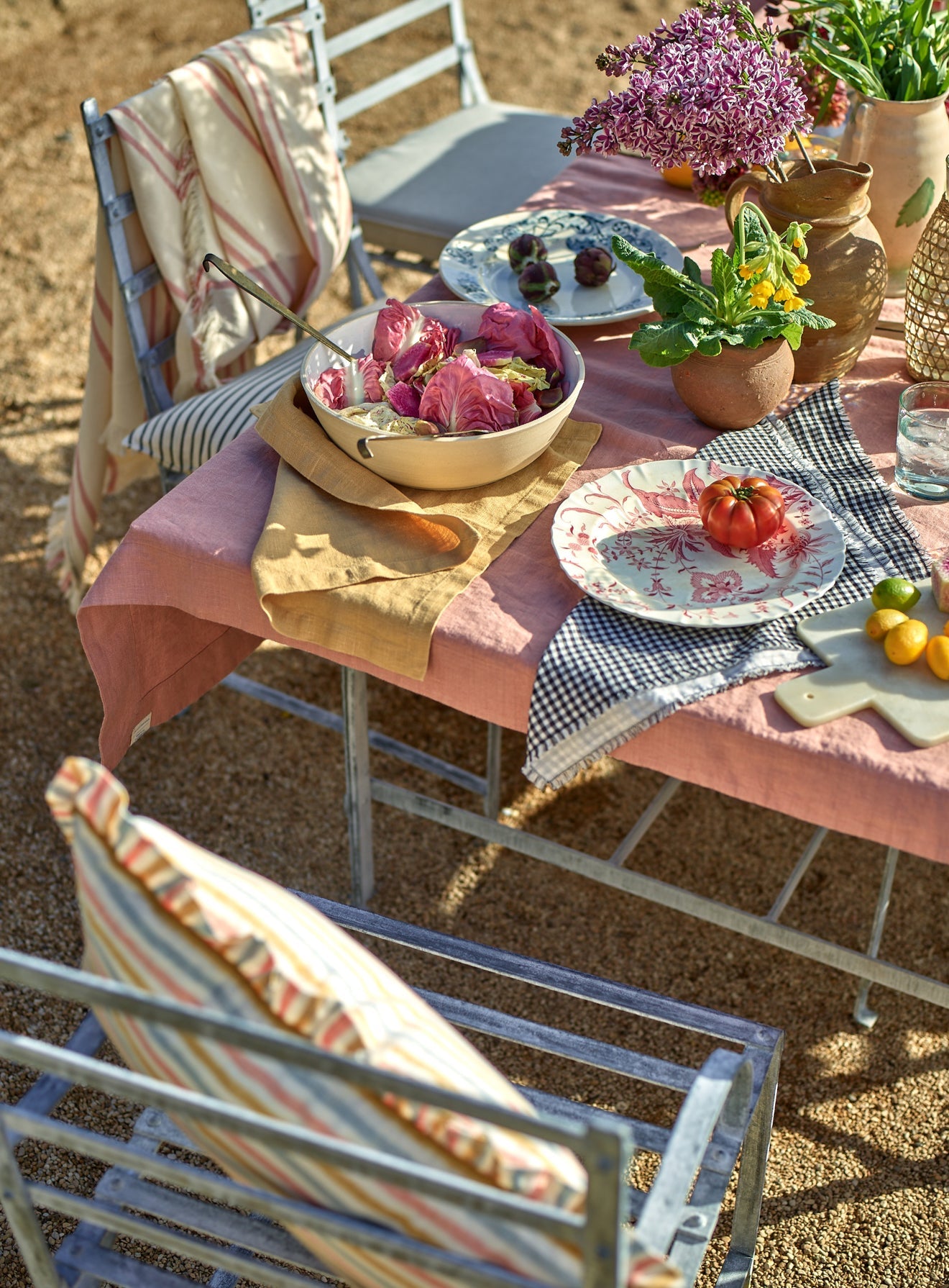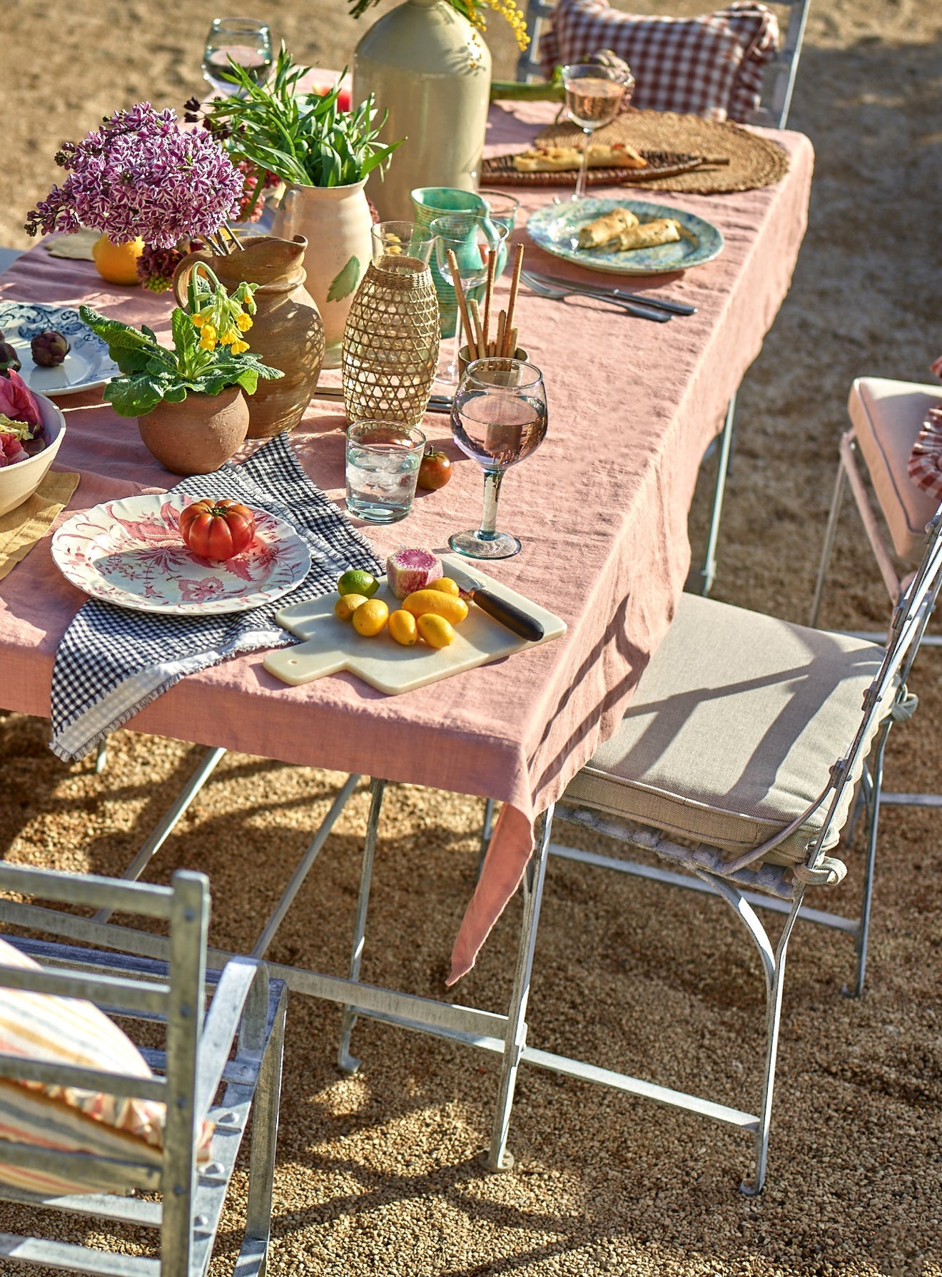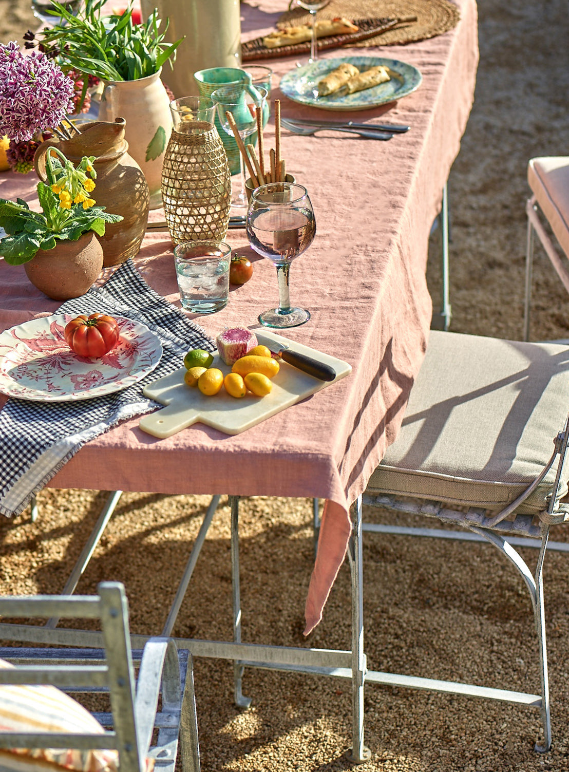 - A beautifully textured linen tablecloth in Plaster Pink
