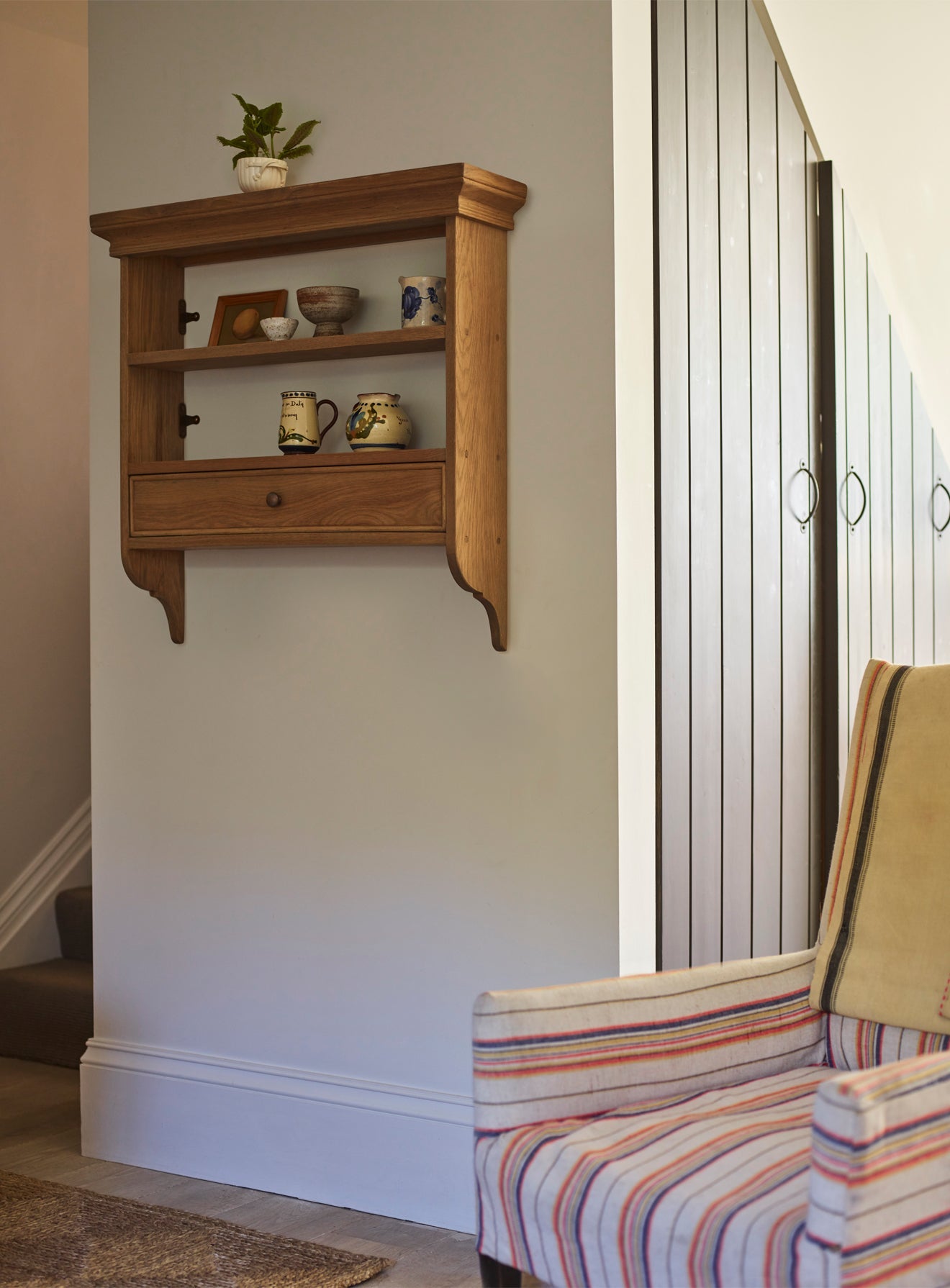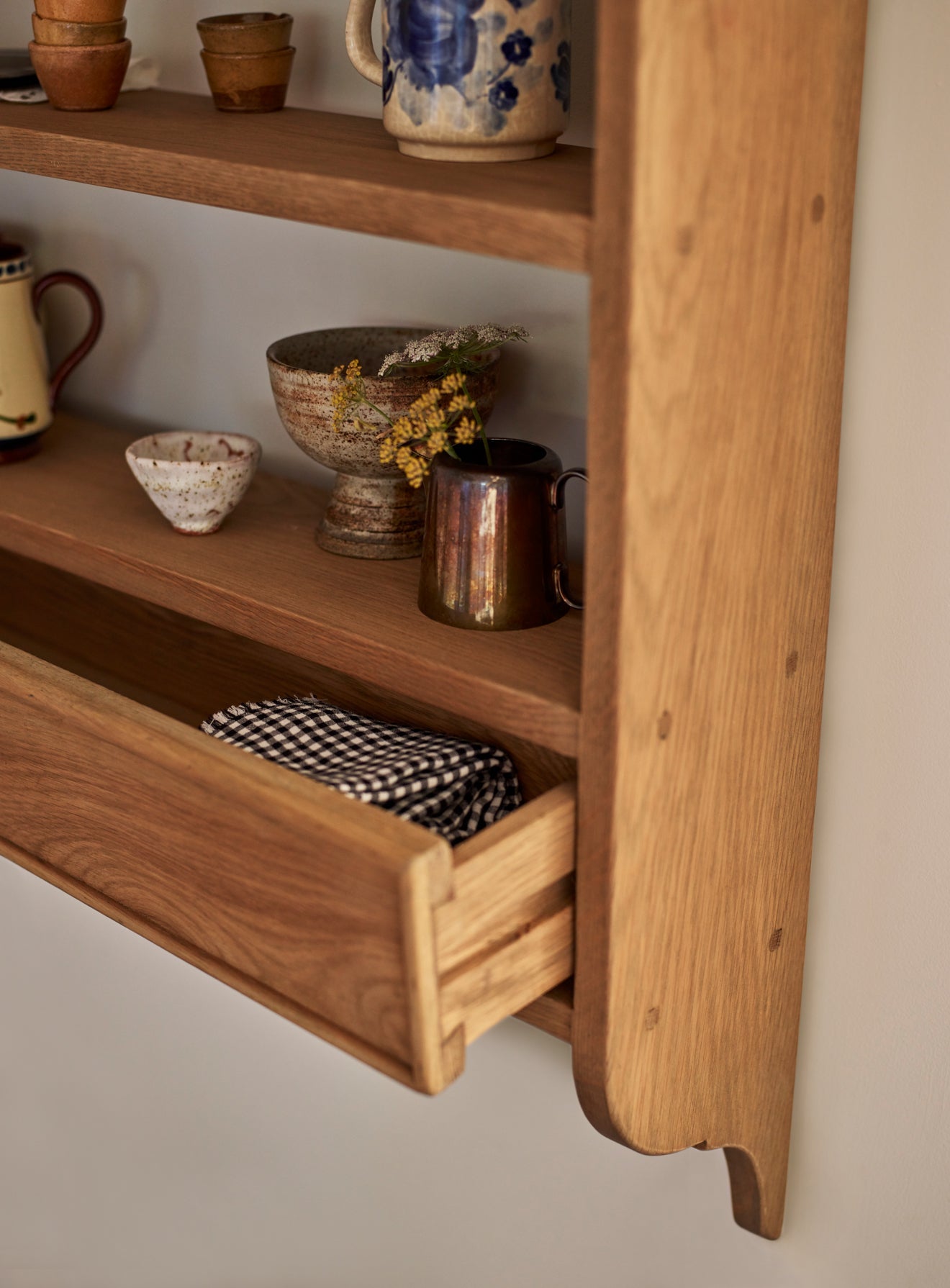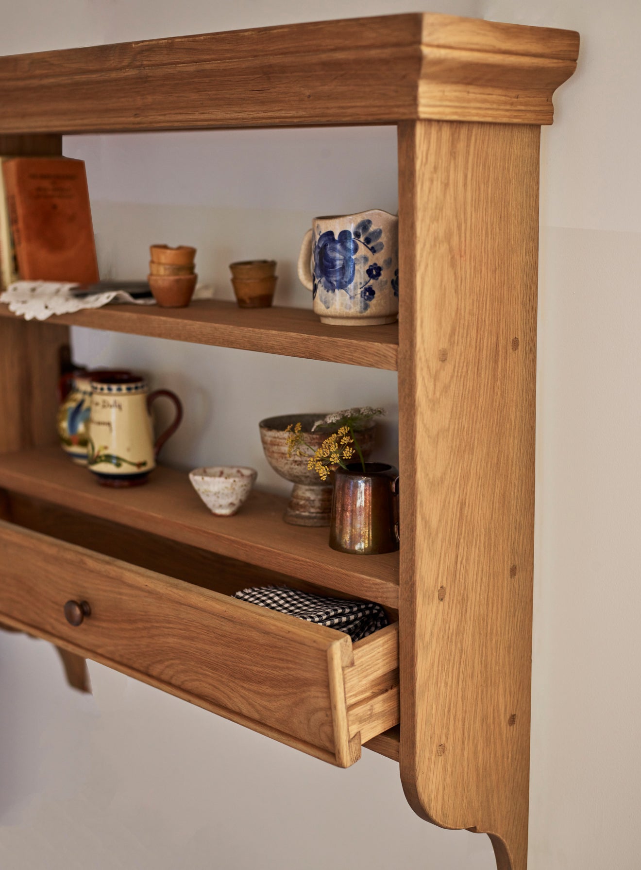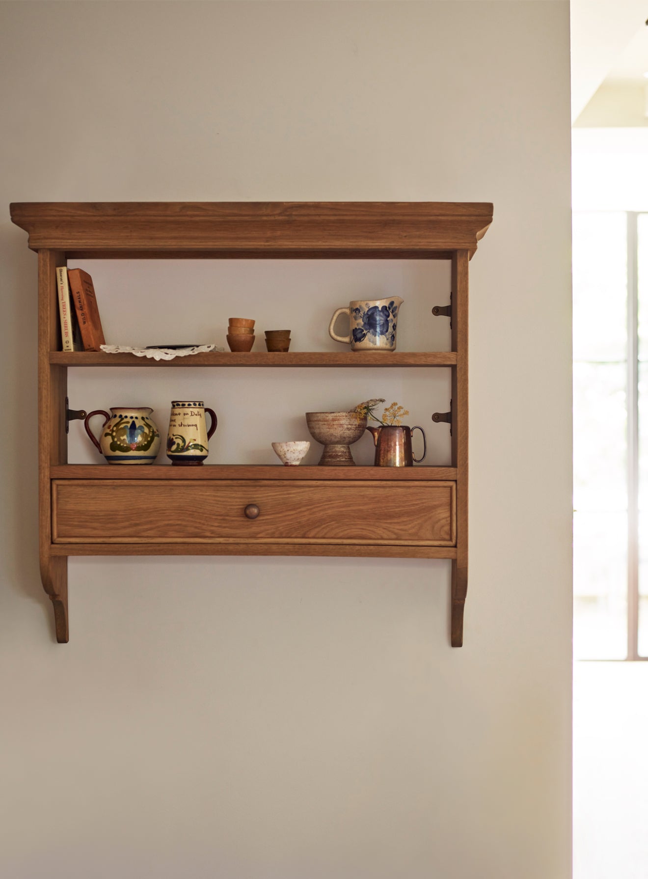 - A wooden wall shelf inspired by an antique in our founders' cottage kitchen